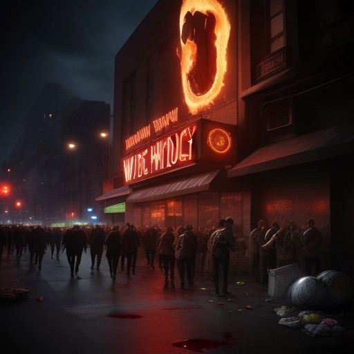 (crowd), chibi, cute, monster, food, machine, mouse, cat, war,, bullets, gun, rpg, blood, fire, waste, trash, (night club background), building, beer, vodka, whiskey, scotch, blood, fight, ((((drunk)))), journal cover, text, big text 435436754634