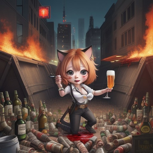 (crowd), chibi, cute, monster, food, machine, mouse, cat, war,, bullets, gun, rpg, blood, fire, waste, trash, (field background), building, beer, vodka, whiskey, scotch, blood, fight, ((((drunk)))), journal cover 4ef5d6detrd354646
