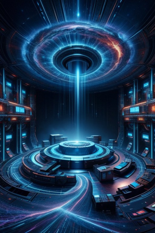 ultra realistic 8k, masterpiece, Digital Cyberspace theme, dark, Cyberspace star ship, black background, (blue nebula swirls, cracks), vortex, futuristic space ship interior,