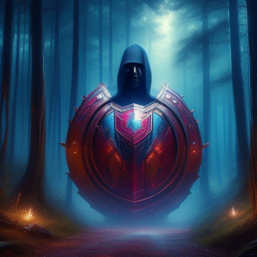Cyberspace, Digital Cyberspace theme, a shield in a cyberpunk forest