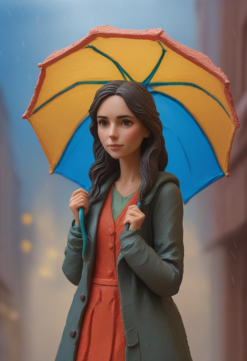 masterpiece, best quality, high quality, good quality, novuschroma51 style, beautiful art, 1girl, holding an umbrella, made of clay