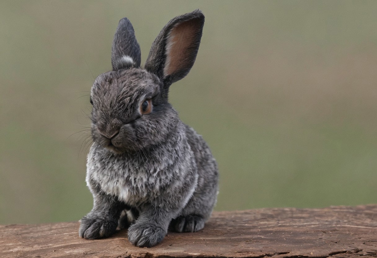 novuschroma51 style, cute Black baby rabbit, (breed:unknown), (body type:small), (pose:standing), (detailed fur:1.3), (expression:curious), (profile view) positioned on a weathered wooden plank