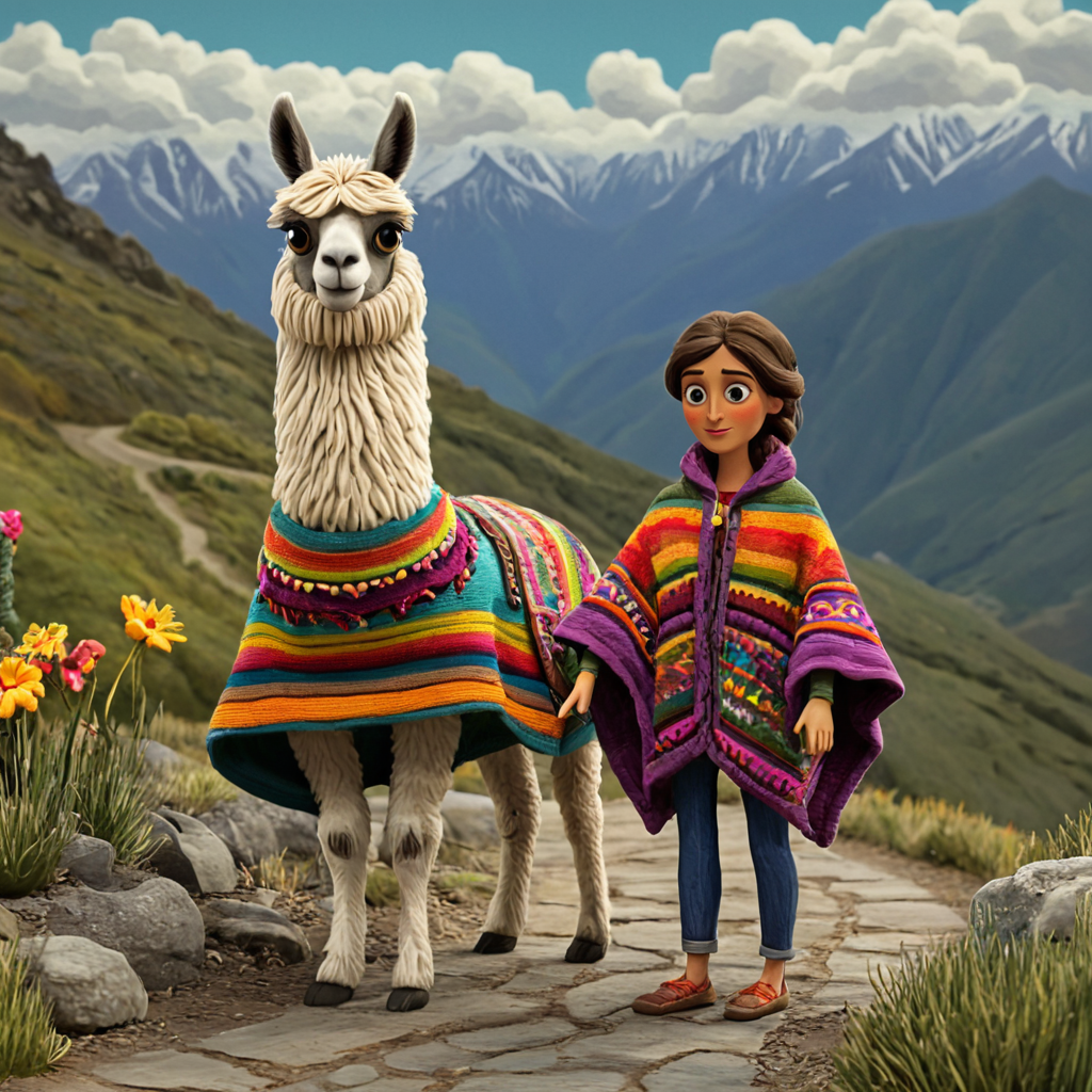 <lora:novuschroma51 style_c:1.3>, novuschroma51 style, claymation, BREAK, girl and a llama , together, girl1, wearing a montera, poncho, ojatas, lliklla, colorful blouse, embroidered jacket, llama, white fur, colorful blanket, daytime, clouds, mountains, gray, rocky, winding path, vivid colors, high-res, beautiful aesthetic, very intricate, high-quality details, vibrant, highly detailed,