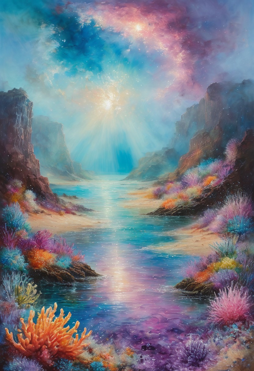 (masterpiece:1.4), (intricate details:1.4), (hyperrealistic:1.3),(painting:0.9),(fantasy landscape:1.3), <lora:YvonneCoomber:0.3> yvonne coomber style, Caribbean coral reef with parrotfish schools, Chinook winds melting snow patches, Homogenitus from industrial plumes, Submarine hydrothermal vent glow, Playas with mud cracks, Claude Monet: (impressionist blur), (water reflections), (pastel hues), (organic brushwork), Desert of sand that whispers prophecies Fog that ages objects centuries Establishing shot, <lora:landscapes:0.7> <lora:JuggerCineXL2:1> <lora:add-detail-xl:1.15>, <lora:WildcardX-XL-Detail-Enhancer:0.65>, <lora:sdxl_lightning_8step_lora:1>, <lora:EnvyElvishArchitectureXL01:0.2> elven architecture , <lora:EnvyDramaticLightingXL02_photo:0.4>, <lora:xl_more_art-full_v1:0.6>,made of sparkling amethyst crystals
