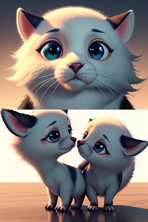 two cute furry creatures in love, 3d fluffy, closeup cute and adorable, cute big circular reflective eyes, long fuzzy fur, Pixar render, unreal engine cinematic smooth, intricate detail, cinematic, valentines hart as background