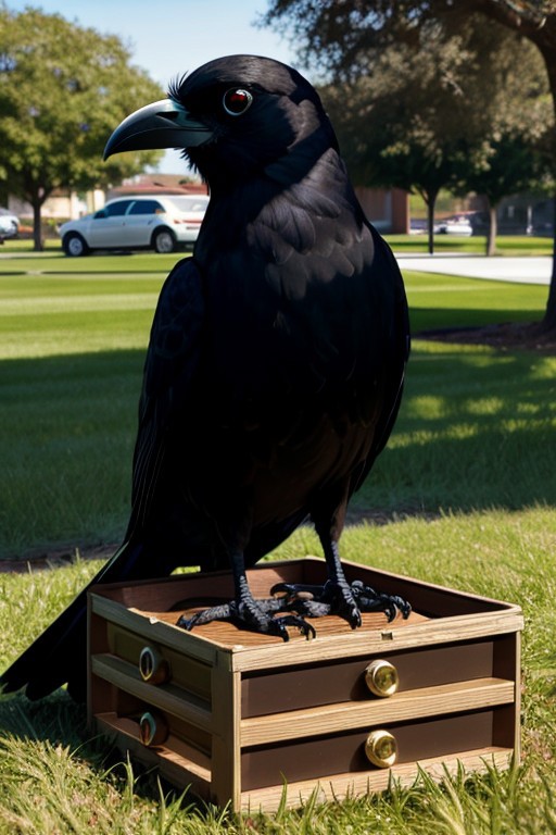 1bird, black raven, sitting on box full of chocolate, valentines day chocolate, heart shaped bos, on lawn, next to nest full of jewelry, bird watching jewelry, masterpiece, highest quality photo, realistic lighting, high skin details, perfect eyes <lora:ReaPhoLoRA:0.9> <lora:RealDownblouse4:0.7>