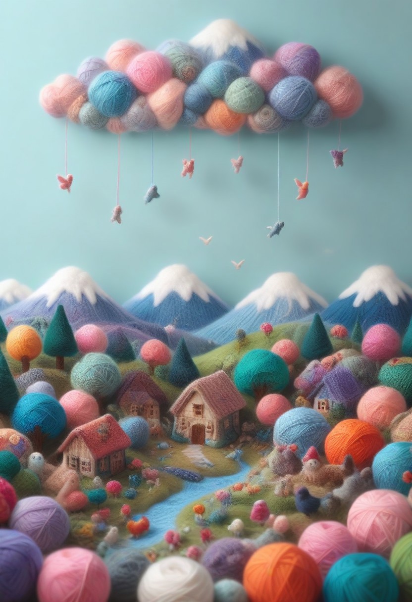 masterpiece, best quality, high quality, sfw, bird, yrnwrld, simple background, yarn clouds, forest