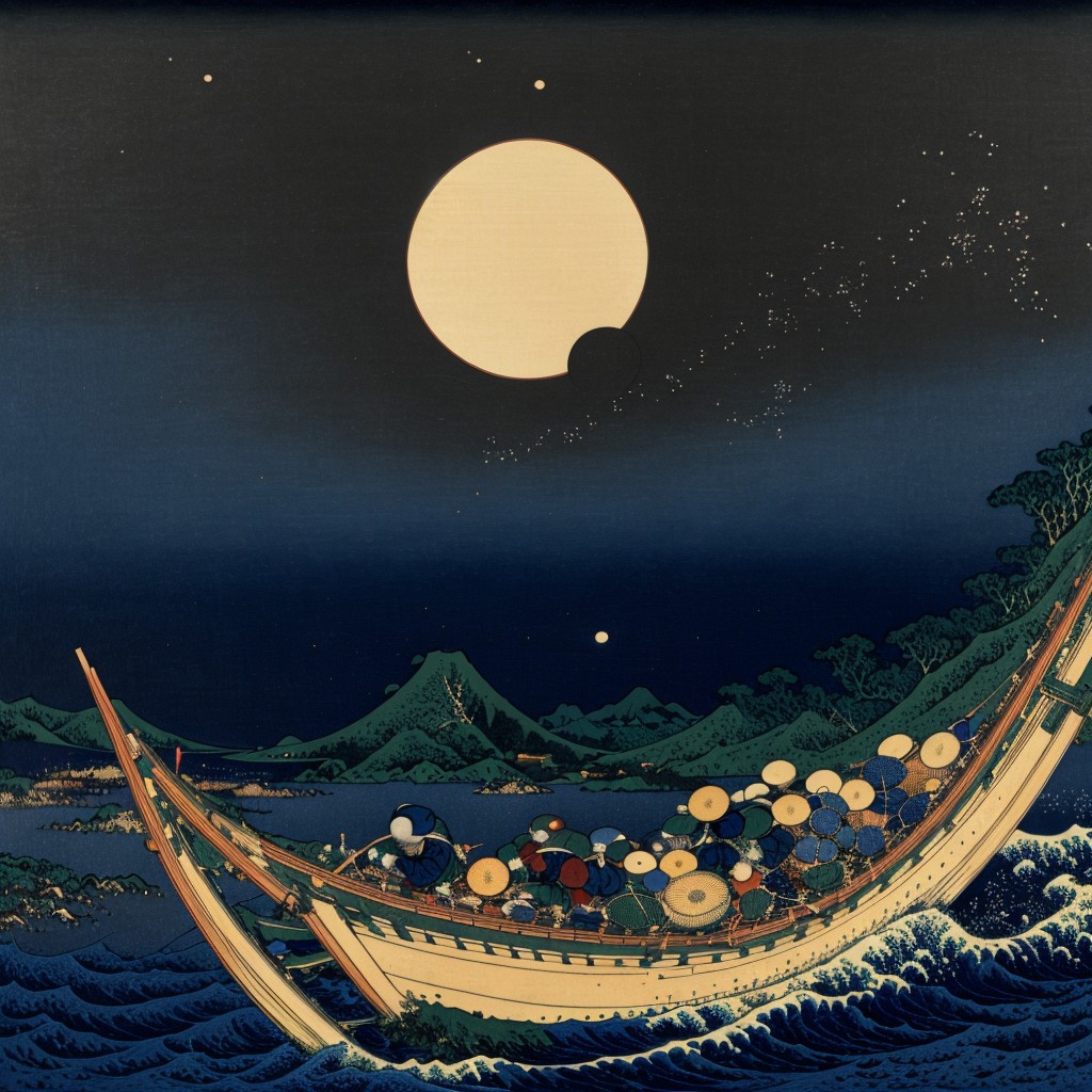 (masterpiece, top quality, best quality, official art, beautiful and aesthetic:1.2), a solar eclipse, 葛飾 北斎, katsushikahokusai, <lora:KatsushikaHokusai:1.0>