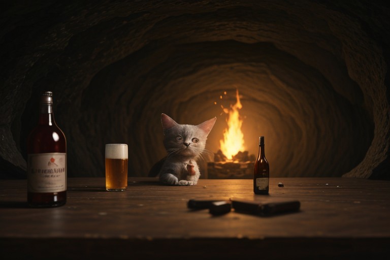 chibi, cute, sparkles, food, machine, mouse, cat, war,, bullets, gun, rpg, blood, fire, waste, trash, (dark cave background), building, beer, vodka, whiskey, scotch, blood, fight, ((((drunk)))), journal cover, text, (((big text))) rcetretcsretycserty