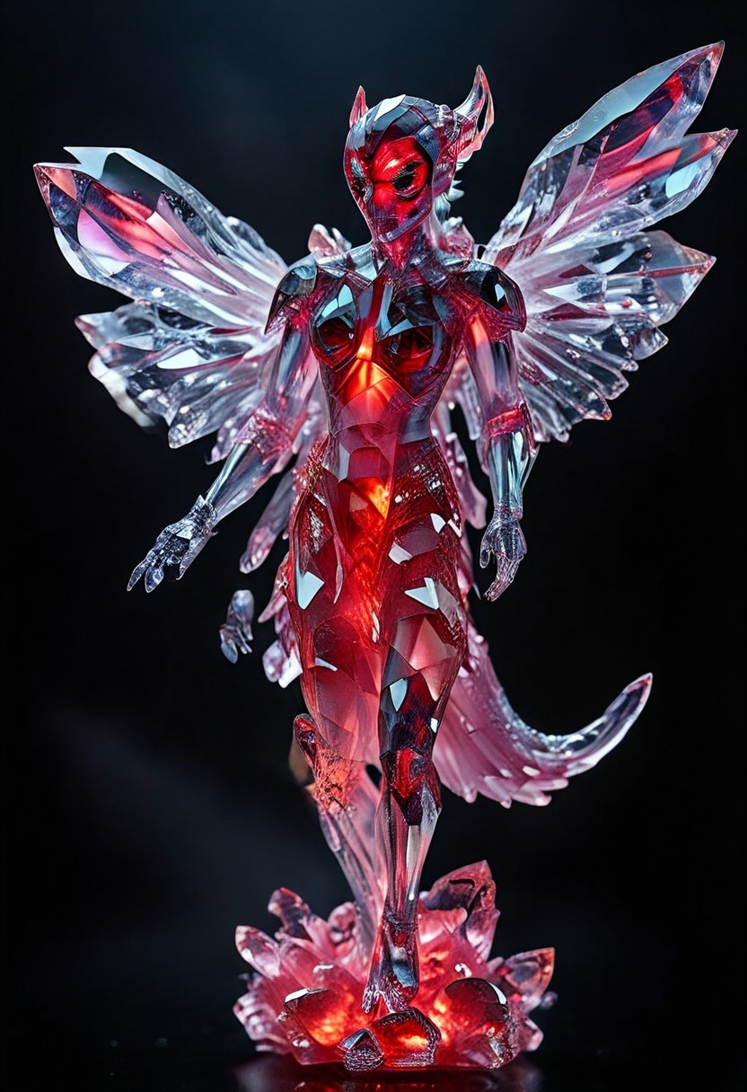 kftenhance, masterpiece, best quality, amazing quality, very aesthetic, high resolution, absurdres, newest, photorealistic, realistic, rp_slgd, xenif, crystal body, xenomorph, xenomorph made of Soul-Gems, facing viewer, teeth, sharp teeth, tail, no humans, monster, colored skin, black skin, claws, full body, crystals, gems, glowing, monster girl,
