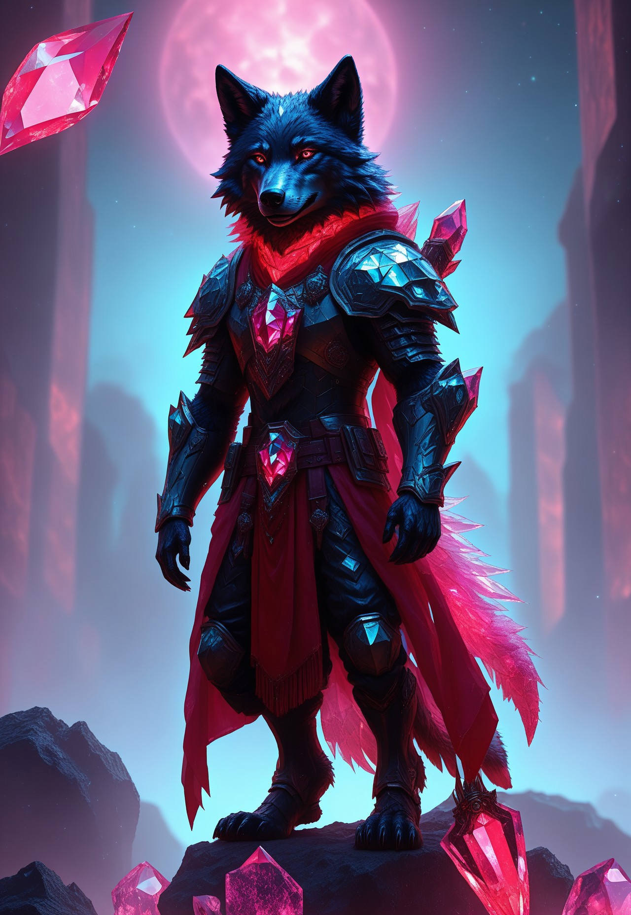 masterpiece, best quality, newest, (((Barefoot furry character, cinematic setting, furry male))), eyecatching composition, dynamic pose, dynamic angles, detailed background ((anthro wolf warrior)), ((furry)), ((detailed fur)), ((soul gem armor)), radiant, ((crystalized plating)), glowing gem accents, ((geometric engravings)), ((crystal shards)), ((translucent panels)), ((wireframe overlays)), cosmic background, astronomy, nebula, starry sky, futuristic fantasy, heroic pose, cinematic lighting, astral energy, radiant regalia
