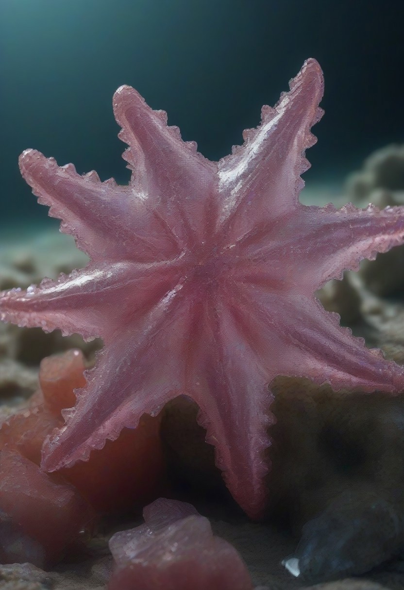 score_9, score_8_up, score_7_up, source_cartoon, parody, Professional photo of a starfish made of cristal with human teeth, rp_slgd
