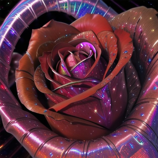 Use score_9, score_8_up, score_7_up, , Robot girl, Mecha, rating_safe, cinematic, cinematic photo, close-up, portrait, orange rim lighting, atmospheric, bokeh, dynamic angle, vibrant lighting, dramatic shadows, highly detailed, realistic, high contrast, extremely detailed, photo realistic, professional, detailed skin, depth of field, film grain, Android, mechanical limbs, robot joints, metal skin, detailed eyes, beautiful, detailed background, perfect eyes, a mysterious android woman gazes curiously at a red (holographic rose:2) blooming from the palm of her sleek obsidian Hand, Perfect Hand, rose is in center of scene, she is looking at the rose with fierce eyes, upper body, from_side