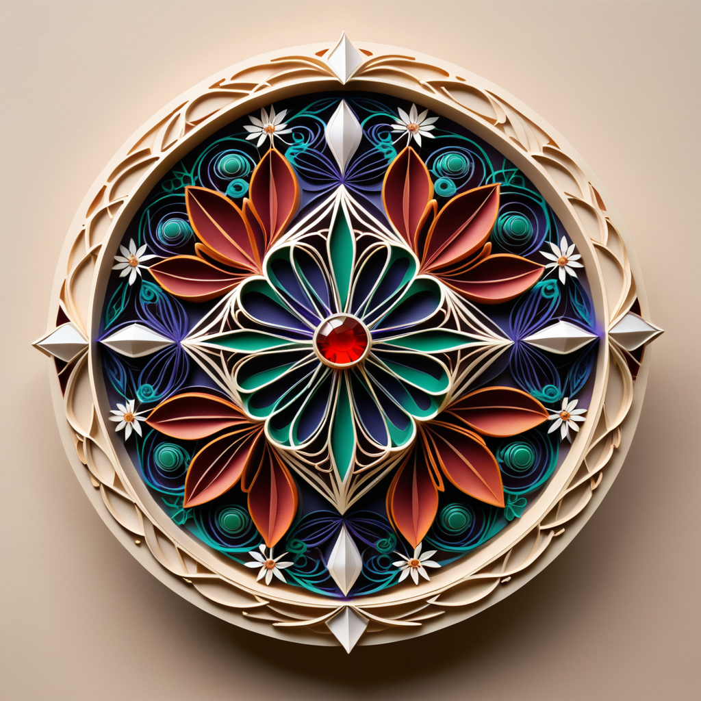 Kirigami representation of (Highly Rated Drawing:1.3) of (Ultrarealistic:1.3),(Fearful:1.3) Saffron, intricate, beautiful, symmetric, polygon, interconnected regions, elements, Ebony, Ivory, Emerald, Ruby, Sapphire, Amber, Gold, Silver, Bronze, Diamond, Topas, Amethyst, Mosaic, Regular pattern, Topography, Animal, Flower, Ring, Fractal, Person, Object, Frame, Branches, wool, embroidery, Celestial Sphere: A model representing the positions of stars and planets in the sky, used for teaching astronomy.,Joyful Anniversary Cake: A beautifully decorated cake, symbolizing celebrations of love and milestones.,Tundra: Cold, treeless regions with permafrost and low vegetation. <lora:Line Art Style SDXL_LoRA_20r_20e_8i_nr32_a16_Pony Diffusion V6 XL:1>,(by Artist Adolf Kosarek:1.3),(Constructivism Art:1.3),(Dark hue:1.3), 3D, paper folding, paper cutting, Japanese, intricate, symmetrical, precision, clean lines
