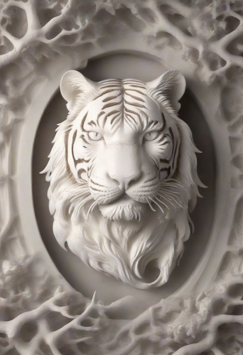 masterpiece, art style, WhiteMold, tiger, ultra detailed, 3d printed mold, no humans, nobody, black stars background