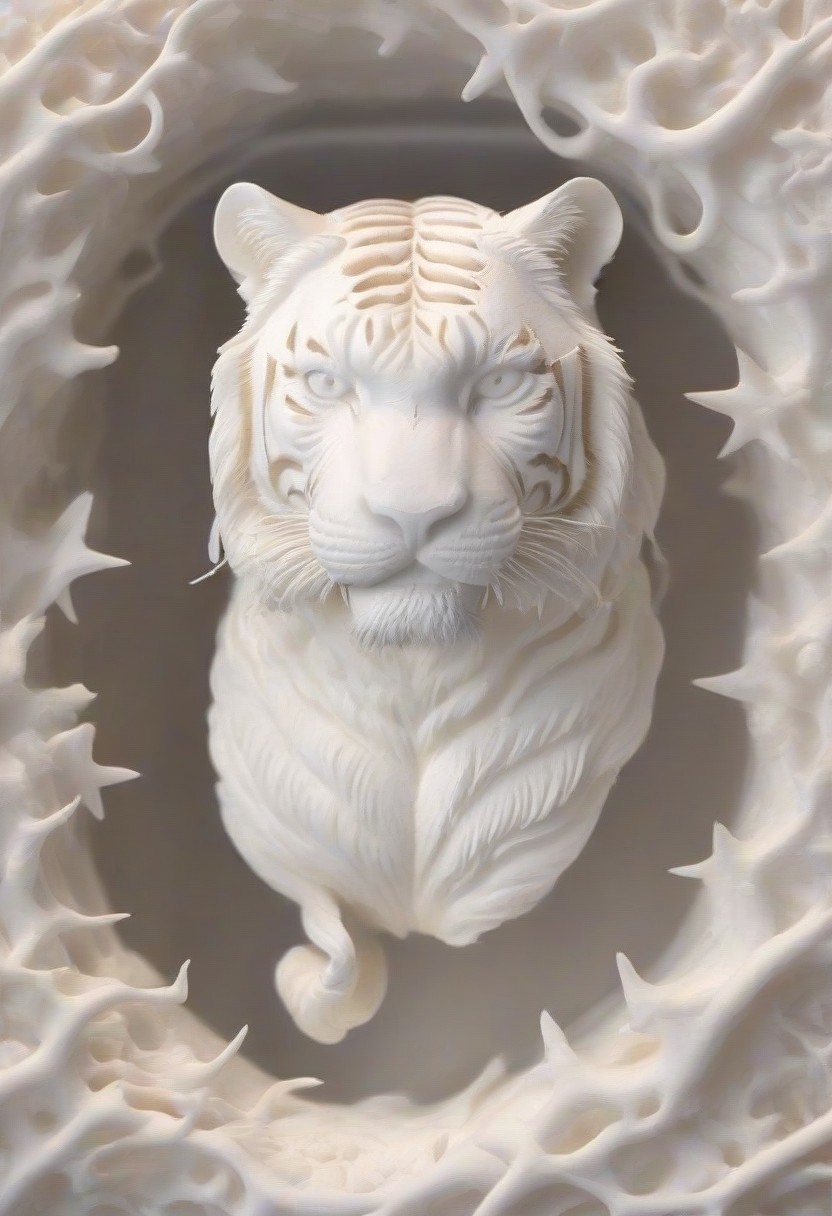 masterpiece, art style, WhiteMold, tiger, ultra detailed, 3d printed mold, no humans, nobody, black stars background