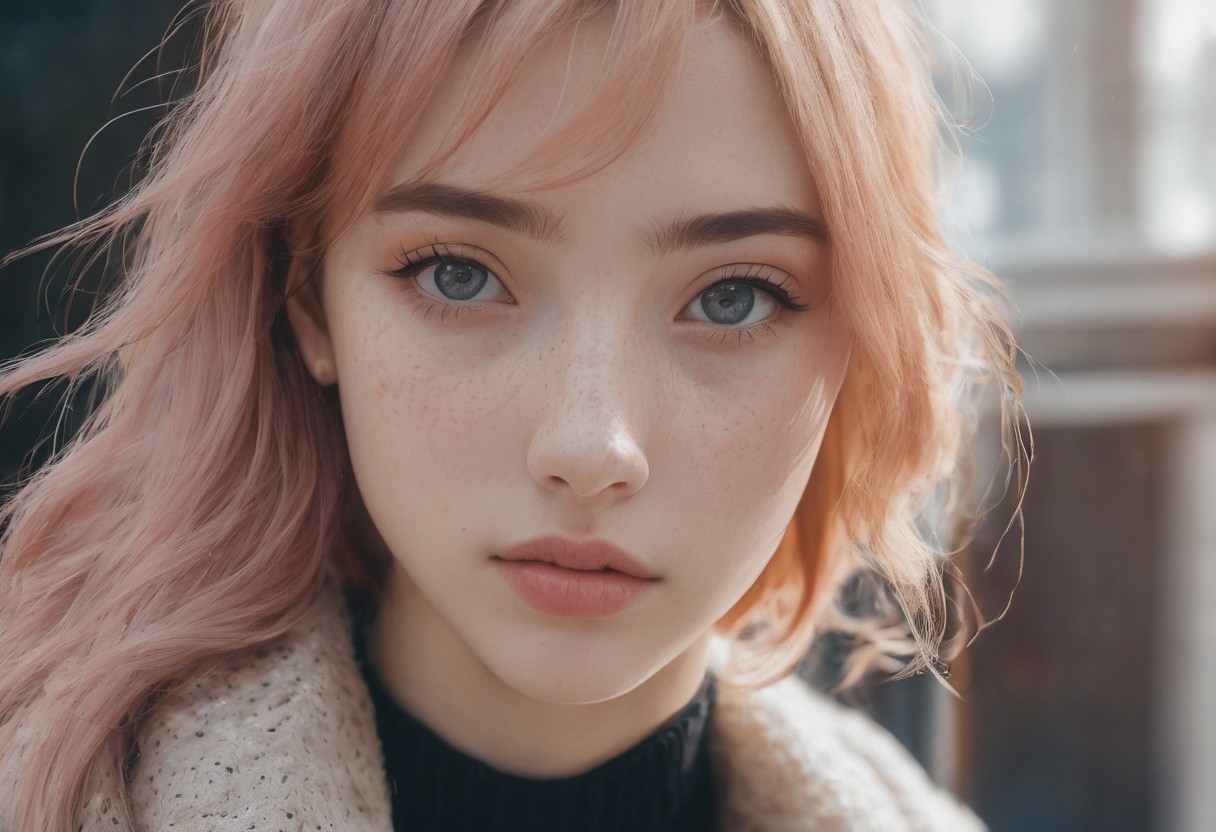 photo of beautiful age 18 girl, pastel hair, freckles sexy, beautiful, close up, young, dslr, 8k, 4k, ultrarealistic, realistic, natural skin, textured skin