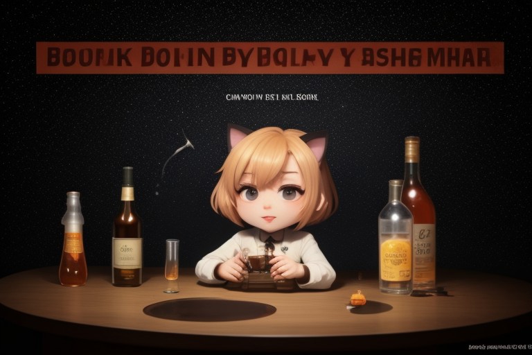 ((chibi)), sparkles, food, machine, mouse, cat, war,, bullets, gun, rpg, blood, fire, waste, trash, (lunar surface background), building, beer, vodka, whiskey, scotch, blood, fight, ((((drunk)))), journal cover, text, (((big text))) ynr5ynrd5md6ynrd6nrdn