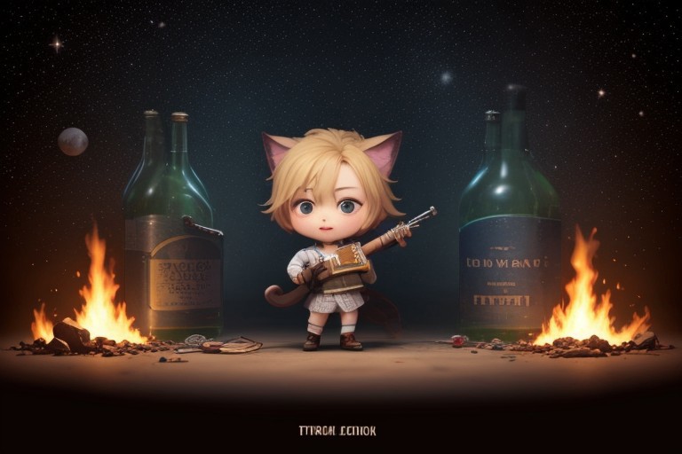 ((chibi)), sparkles, food, machine, mouse, cat, war,, bullets, gun, rpg, blood, fire, waste, trash, (lunar surface background), building, beer, vodka, whiskey, scotch, blood, fight, ((((drunk)))), journal cover, text, (((big text))) ynuvtcygununn