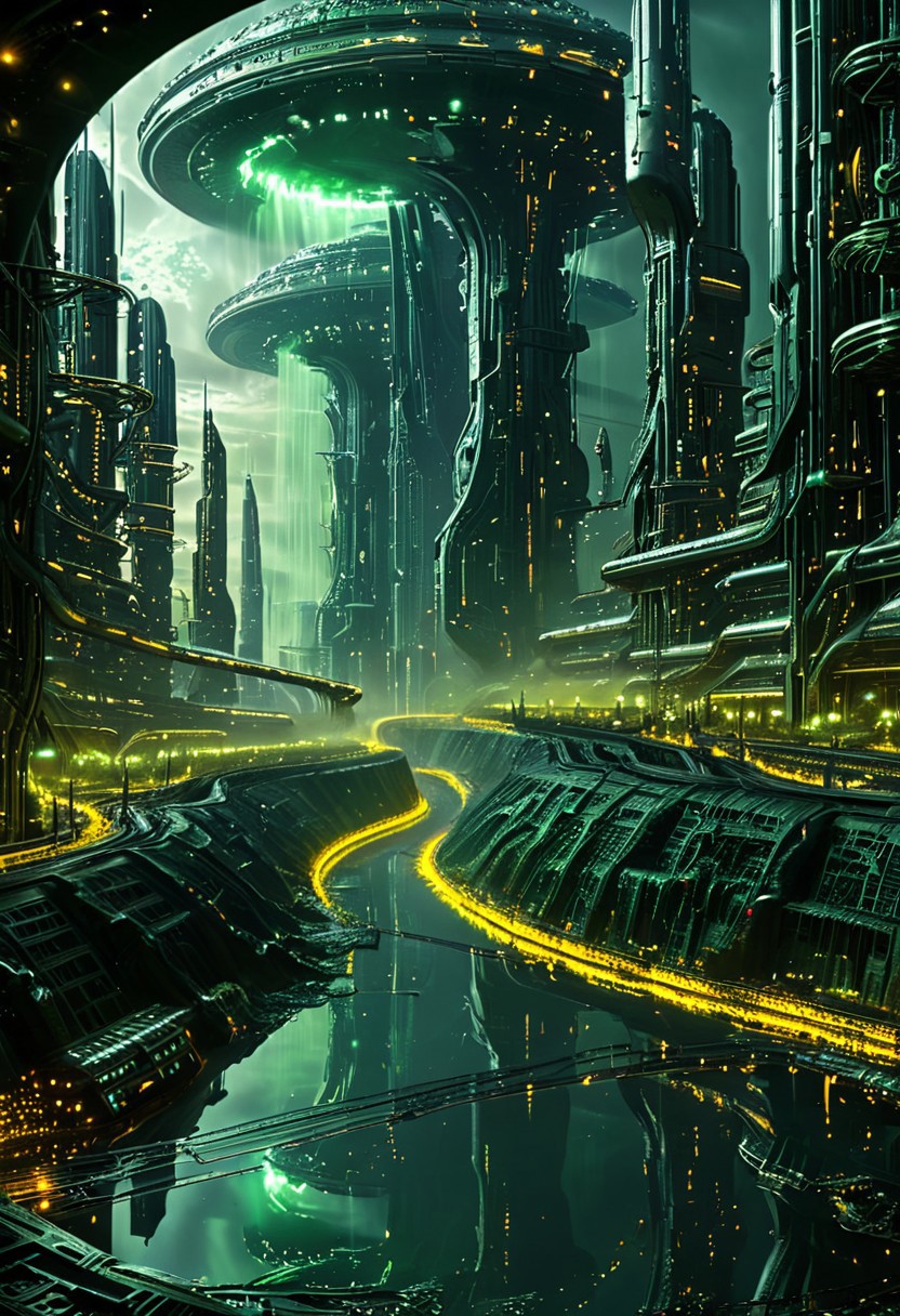 A colossal machine-world, its surface an endless labyrinth of self-replicating factories and biomechanical towers, constantly birthing and recycling alien civilizations. Metallic rivers flow with liquid data, feeding billions of mechanized entities, each programmed for a single purpose. Towering robotic deities oversee their creations, erasing them when they become obsolete. The planet’s core pulses with an unknown intelligence, its motives unfathomable. Ultra-detailed, hyper-realistic, cinematic lighting, 8K, octane render, cosmic horror, biomechanical world, dystopian artificial life, surreal sci-fi, dark and awe-inspiring. alienworld