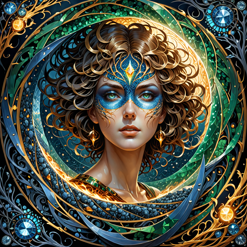 Neo-Impressionism, (Rough Photo:1.3) of (Ultrarealistic:1.3),(Cosy:1.3) Smoky Blue, intricate, symmetric, polygon, interconnected regions, elements, Ebony, Emerald, Amber, Gold, Bronze, Diamond, Topas, Mosaic, Person, Frame, Branches, Wrathful Tornado: A violently spinning vortex of destruction, seeming almost sentient in its fury.,Plateaus: Flat, elevated areas of land.,Torcs: Rigid, circular neck rings made of metal, often twisted or decorated. <lora:clothing_slider_v19:4>,(by Artist Albert Lynch:1.3),Highly Detailed,(Psytrance Art:1.3),(One Color:1.3), tiny dabs of color, Pointillism, painterly, Neo-Impressionism
