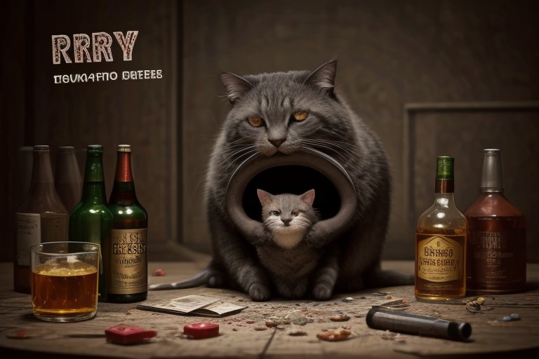 chibi, cute, sparkles, food, machine, mouse, cat, war,, bullets, gun, rpg, blood, fire, waste, trash, (workshop background), building, beer, vodka, whiskey, scotch, blood, fight, ((((drunk)))), journal cover, text, (((big text))) rnyrynry