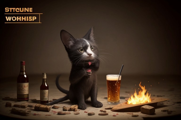 chibi, cute, sparkles, food, machine, mouse, cat, war,, bullets, gun, rpg, blood, fire, waste, trash, (workshop background), building, beer, vodka, whiskey, scotch, blood, fight, ((((drunk)))), journal cover, text, (((big text))) rn56r5n6r7nr