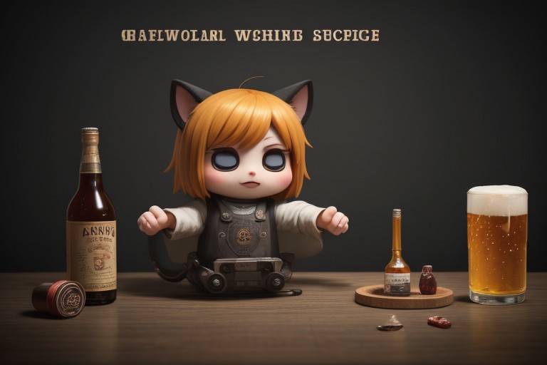 chibi, cute, sparkles, food, machine, mouse, cat, war,, bullets, gun, rpg, blood, fire, waste, trash, (workshop background), building, beer, vodka, whiskey, scotch, blood, fight, ((((drunk)))), journal cover, text, (((big text))) rn56r5n6r7nr