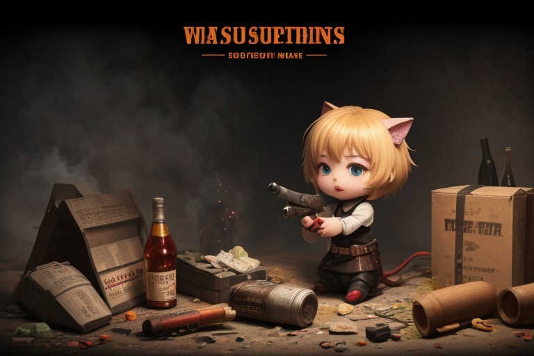 chibi, cute, sparkles, food, machine, mouse, cat, war,, bullets, gun, rpg, blood, fire, waste, trash, (polar background), building, beer, vodka, whiskey, scotch, blood, fight, ((((drunk)))), journal cover, text, (((big text))) rebtrebryubry
