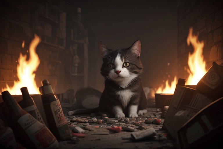 chibi, cute, sparkles, food, machine, mouse, cat, war,, bullets, gun, rpg, blood, fire, waste, trash, (polar background), building, beer, vodka, whiskey, scotch, blood, fight, ((((drunk)))), journal cover, text, (((big text))) 67ncr76crnn7