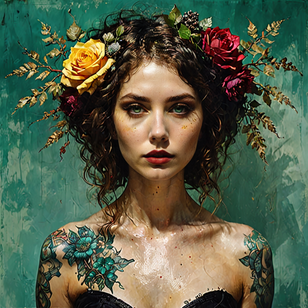 Double Exposure photography, (Sacrificial Drawing:1.3) of (Rough sketch:1.3),(Grim:1.3) Taxi Cab Yellow, polygon, Ebony, Emerald, Ruby, Sapphire, Silver, Bronze, Topas, Amethyst, Mosaic, Topography, Flower, Ring, Fractal, Frame, Branches, Solar-Powered Lamp: A lamp that stores energy from the sun and shines brightly at night.,Tattooed Skin: Body art created with ink injected into the skin.,Gale: Strong winds, typically ranging from 34 to 40 knots. <lora:d4rk01lXLP:1> d4rk01l,(by Artist Hannah Yata:1.3),(Hipster Art:1.3),(Red hue:1.3), double image ghost effect, image combination, double exposure style