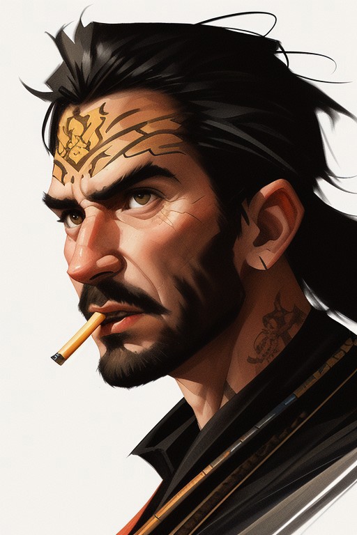 illustration in style of samdoesarts, portrait of a mean Gangster with a Bandana in Front of his mouth