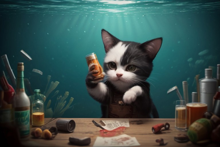 chibi, cute, sparkles, food, machine, mouse, cat, war,, bullets, gun, rpg, blood, fire, waste, trash, (underwater background), building, beer, vodka, whiskey, scotch, blood, fight, ((((drunk)))), journal cover, text, (((big text))) nuttntnuttuntuntunt