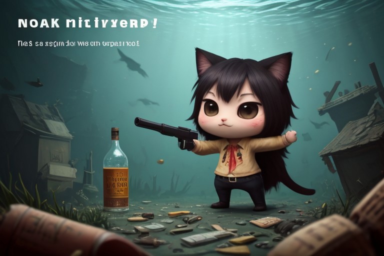 chibi, cute, sparkles, food, machine, mouse, cat, war,, bullets, gun, rpg, blood, fire, waste, trash, (underwater background), building, beer, vodka, whiskey, scotch, blood, fight, ((((drunk)))), journal cover, text, (((big text))) uryrb5nyrn