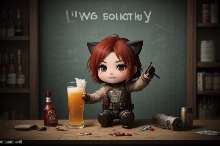 ((chibi)), cute, sparkles, food, machine, mouse, cat, war,, bullets, gun, rpg, blood, fire, waste, trash, (workshop background), building, beer, vodka, whiskey, scotch, blood, fight, ((((drunk)))), journal cover, text, (((big text))) fc5ymcfm6c8cm