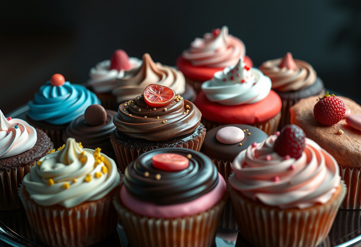 Assortment of Cup Cakes, multiple types of Cup Cakes, dessert treats, Multiple Types of Cup Cakes Aesthetic, detailed matte painting, deep color, fantastical, intricate detail, splash screen, complementary colors, fantasy concept art, 8k resolution trending on Artstation Unreal Engine 5