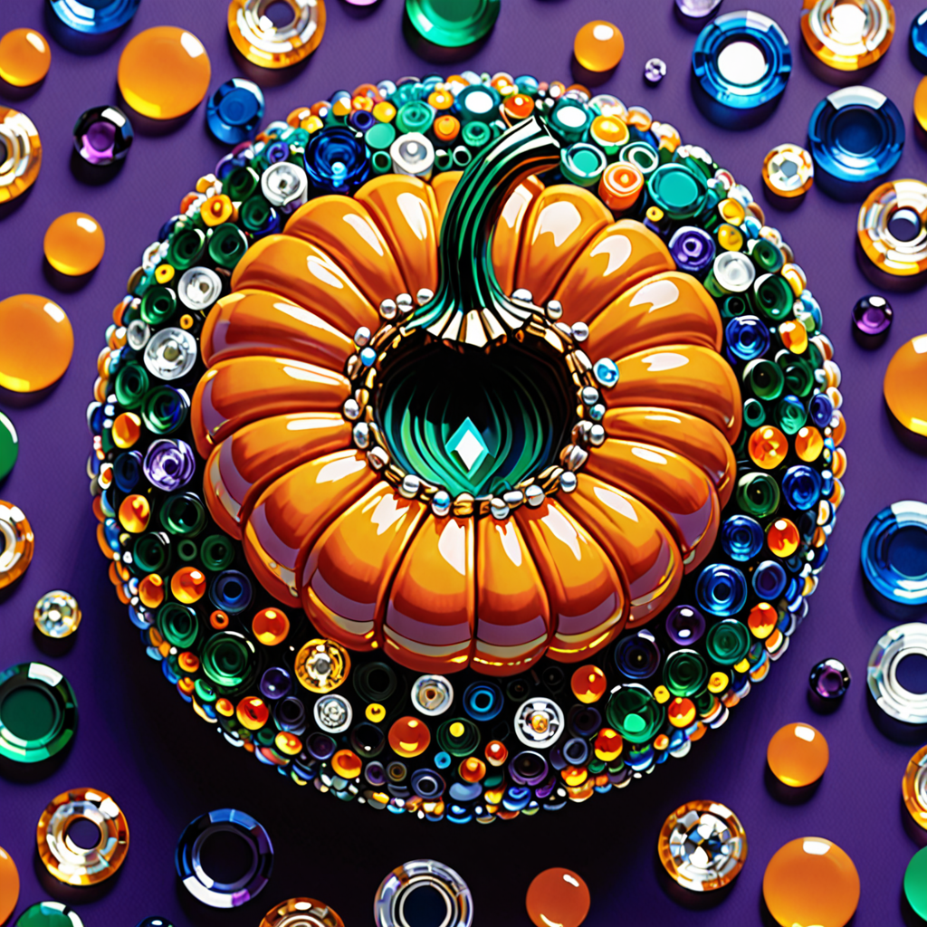Abstract style art of (Destroyed Painting:1.3) of (Visual novel:1.3),(Relieving:1.3) Pumpkin, beautiful, Emerald, Sapphire, Gold, Silver, Diamond, Amethyst, Topography, Ring, Object, embroidery, Millefiori Glass Beads: Beads made from glass rods with multicolored patterns. <lora:Concept Art Eclipse Style LoRA_Pony XL v6:1>,(by Artist Joop Polder:1.3),(Retrofuturism:1.3),(Kodak Ektar:1.3), Non-representational, colors and shapes, expression of feelings, imaginative, highly detailed