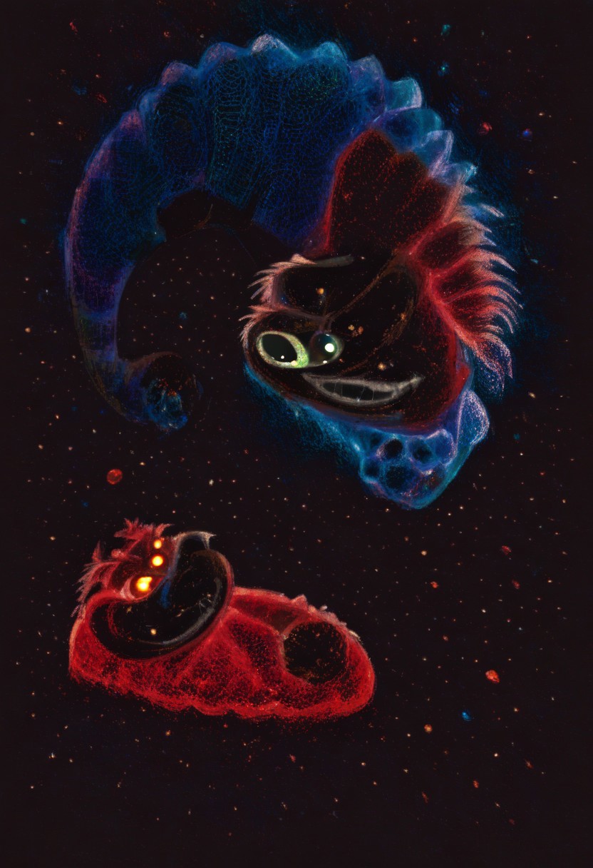 score_9, score_8_up, score_7_up BREAK, The image depicts a black dinosaur made of cristal, possibly a T-Rex, reimagined with a **cristal motif**, standing on a rocky surface near the edge of a celestial body. Its sleek, jagged form is crafted from golden, cristal, each scale layered to create a textured, crunchy exterior. Glowing red eyes, made from translucent, cristal-like fragments, pierce through the darkness, while its open mouth emits an eerie red glow, as if light radiates from within its cristal-layered jaws. The rocky terrain beneath it is also textured with jagged, cristalsome glowing with fiery red cracks, giving it a volcanic or extraterrestrial appearance. Earth looms in the background, its blue hues contrasting with the dark, star-filled sky. A bright red celestial object, resembling a shimmering cristal fragment, glows in the distance, adding to the cosmic isolation. The dinosaur’s cristal-textured form stands out starkly against the celestial backdrop, its glowing red accents and cristal scales blending science fiction with a surreal, cristal-inspired aesthetic. The scene evokes a sense of mystery and otherworldly wonder, where the dinosaur’s menacing presence is both captivating and unsettling, set against the vast, starry expanse of space.
