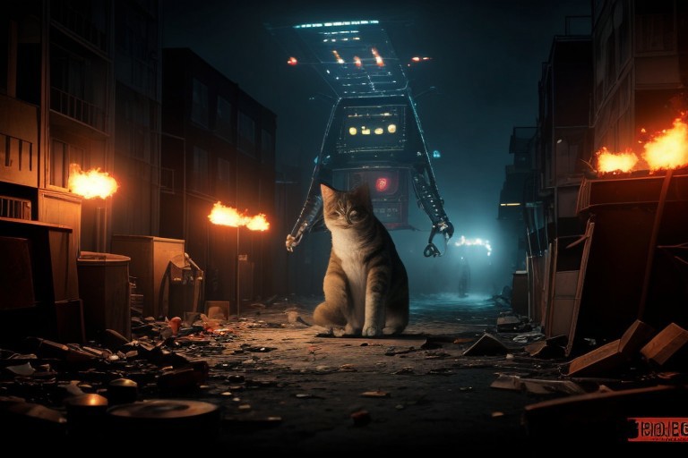 (((area 51))), ufo, apocalypse, cat, chibi, cute, sparkles, machine, mouse, war,, bullets, gun, rpg, blood, fire, waste, trash, (city background), building, beer, vodka, whiskey, scotch, blood, fight, ((((drunk)))), journal cover, text, (((big text))) tnuttnttyutun