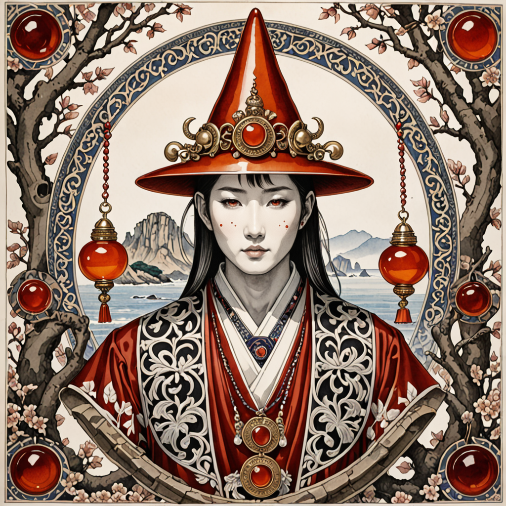 Japanese Style Ink Drawing of (Clumsy Digital Artwork:1.3) of (Detailed illustration:1.3),(Embarrassing:1.3) Varsity Red, symmetric, interconnected regions, Ebony, Ruby, Sapphire, Silver, Bronze, Diamond, Amethyst, Mosaic, Regular pattern, Topography, Animal, Flower, Person, Object, Branches, Foolâs Hat: A hat with floppy, jingling bells, worn by jesters to amuse onlookers.,Carnelian: A reddish-orange variety of chalcedony used in jewelry and seals.,Ivory Carvings: Decorative objects or art pieces made from the tusks of elephants or other animals.,Raspberry Juice: A natural red juice used in cooking and as a dye.,Coastal Cliffs: High, steep rock faces along the coast.,Gothic Arches: Pointed arches used in windows, doors, and other architectural elements. <lora:clothing_slider_v19:0>,(by Artist Christopher Balaskas:1.3),CGSociety,ArtStation,(Primitivism Art:1.3),(Provia:1.3), ink drawing, inkwash, Japanese Style Ink Drawing