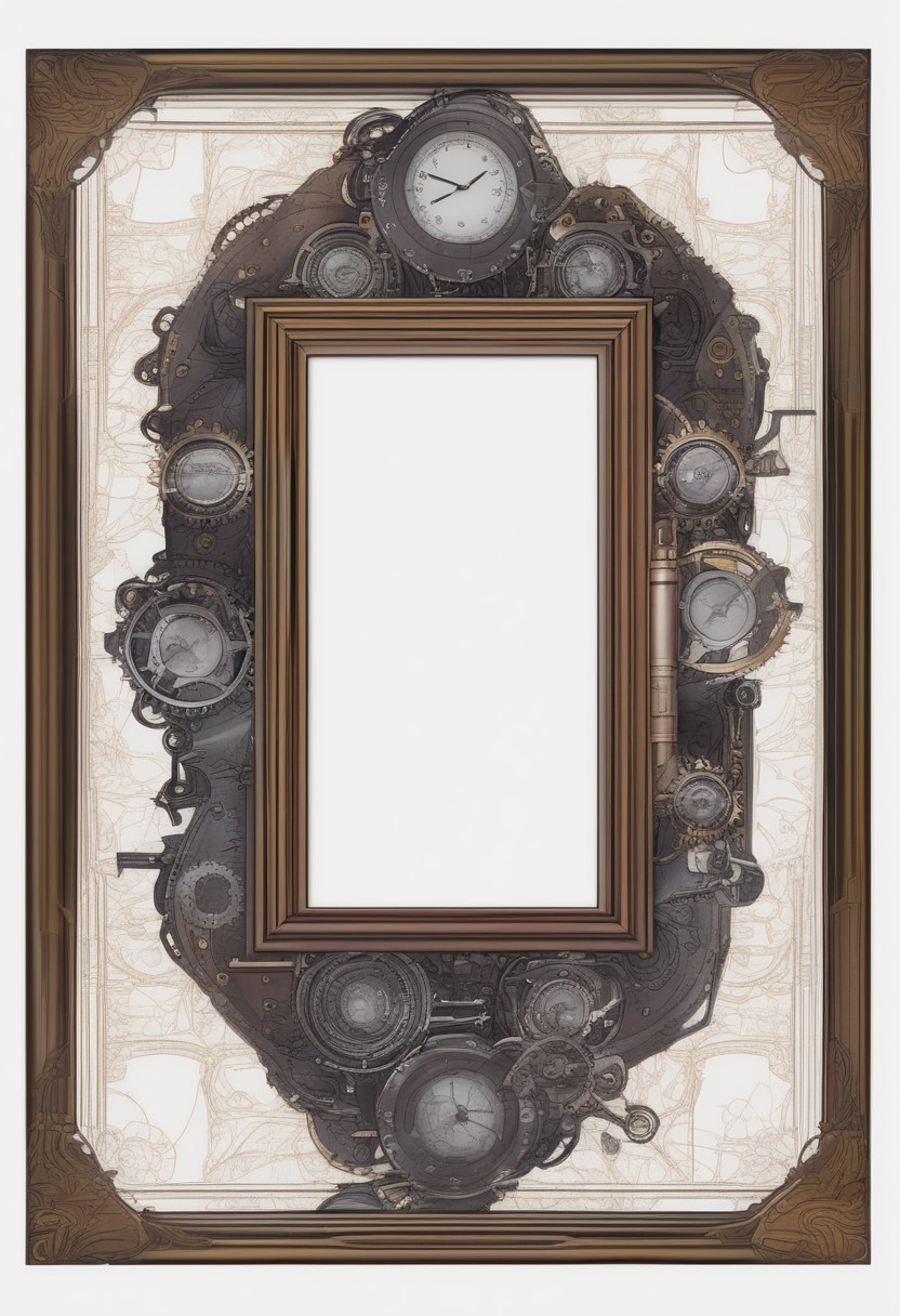 The brass patterned steampunk frame is empty inside. without a background (patterns and decor should not go beyond this frame)
