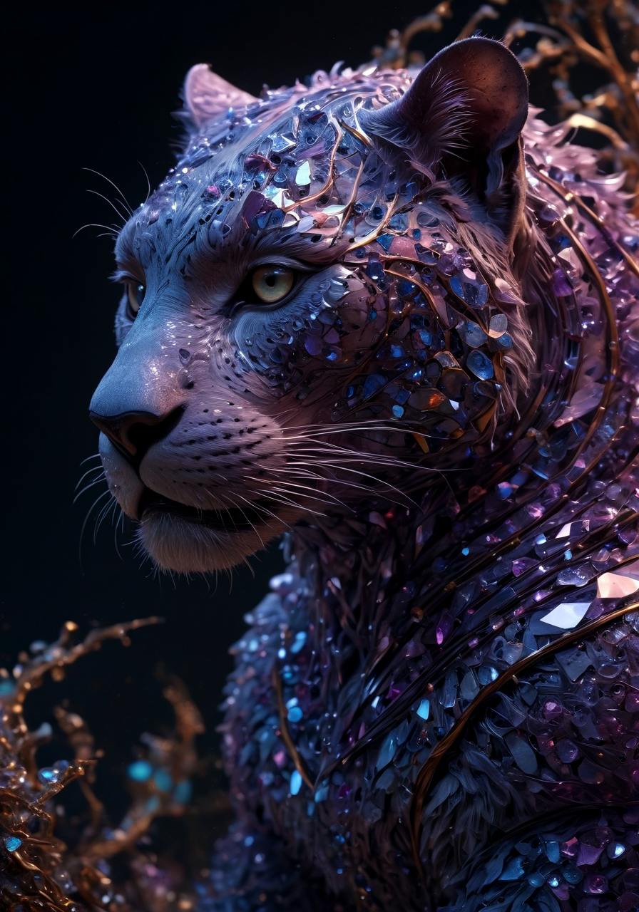 score_9, score_8_up, score_7_up(cs-cr1stal-v2), whimsical, imaginative, an epic image cinematic illumination, volumetric lighting, full-picture of a baroque-inspired panther, (made of shiny crystals), copper wire edging, intricate pattern and design a null background, whimsical illustration converge with surreal touches of crystallography, french art, surrounded by crystal, model, art style, pearlescent light, masterpiece, newest, epic image, sharp-focused, vivid, elegant, sharp-focused, dreamy ambiance, highly detailed, intricate, detail, (bioluminescence, translucent crystal, intricate facets, opal shimmer, amethyst glow, sapphire sparkles:1.2), , Mangamast3r,, cs-cr1stal-v2<lora:Illustrious\Mangamaster style V4_epoch_8.safetensors:0.2:0.2> <lora:sdxl1.0\cs-cr1stal-v2.safetensors:1.0:1.0> <lora:aidma-Image Upgrader-v0.1.safetensors:0.4:0.4> <lora:Fantasy with epic details - XL SDXL v1.0.safetensors:1.0:1.0>