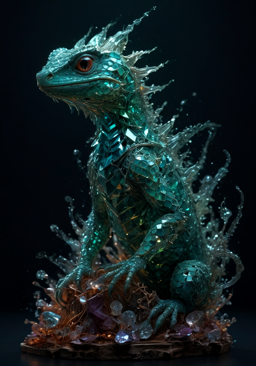 score_9, score_8_up, score_7_up(cs-cr1stal-v2), whimsical, imaginative, an epic image cinematic illumination, volumetric lighting, full-picture of a baroque-inspired crystal lizard, (made of shiny crystals), copper wire edging, intricate pattern and design a null background, whimsical illustration converge with surreal touches of crystallography, french art, surrounded by crystal, model, art style, pearlescent light, masterpiece, newest, epic image, sharp-focused, vivid, elegant, sharp-focused, dreamy ambiance, highly detailed, intricate, detail, (bioluminescence, translucent crystal, intricate facets, emerald shimmer, amethyst glow, sapphire sparkles), , Mangamast3r,, cs-cr1stal-v2<lora:Illustrious\Mangamaster style V4_epoch_8.safetensors:0.2:0.2> <lora:sdxl1.0\cs-cr1stal-v2.safetensors:1.0:1.0> <lora:aidma-Image Upgrader-v0.1.safetensors:0.4:0.4> <lora:Fantasy with epic details - XL SDXL v1.0.safetensors:1.0:1.0>
