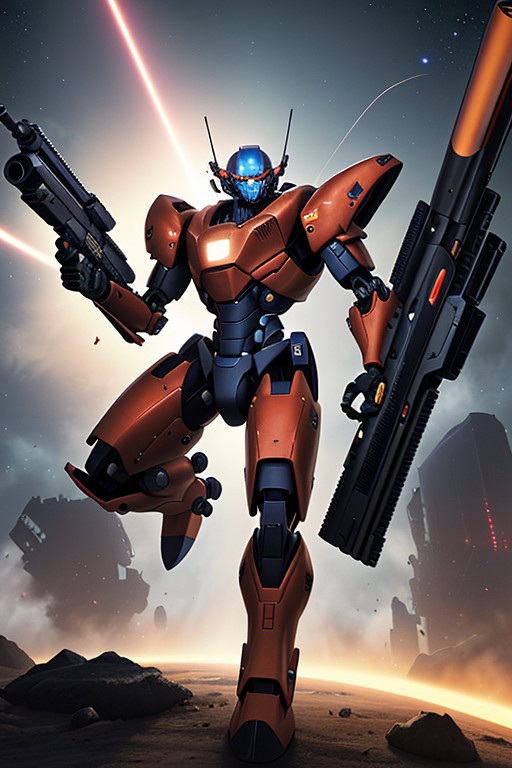 red-white mecha armor, (flying toward the viewer:1.20), armaments equipped in the armor, (right hand holding beam rifle:1.20), space in the background:0.8, (beam rifle equipment on right hand:1.3), (shield equipment on left hand:1.3), mounted missile pod on shoulder