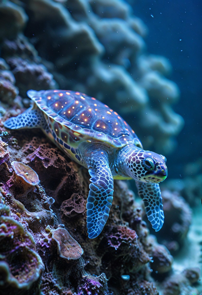 masterpiece, very aesthetic, absurdres, sea turtle, ocean, underwater, soft light, bright, luminescent