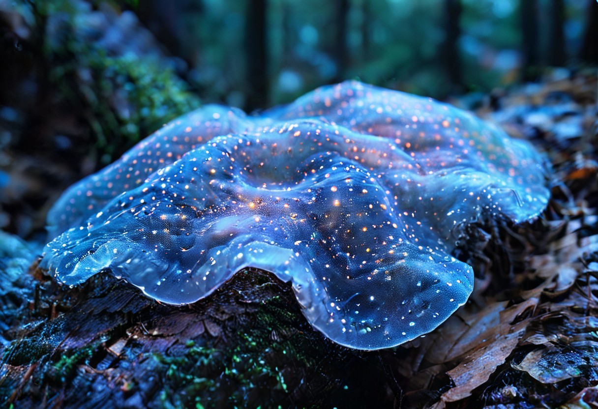 Eerie Beauty: A moonlit forest bathed in an ethereal glow, where ancient, gnarled trees twist into fantastical shapes. Wispy, bioluminescent flowers illuminate the forest floor, while a stack flowers with piercing needles sprout from the shadows.