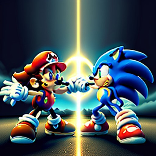 2 caracters, ( Mario), (Sonic the Hedgehog), fist fighting, health bars, epic, state of the art graphics, next gen graphics, playstation6, epic resolution, (((sonic's raw power)), ((mario's hero spirit))), epic win, awsomesauce, epic battle , mature, dark, gritty