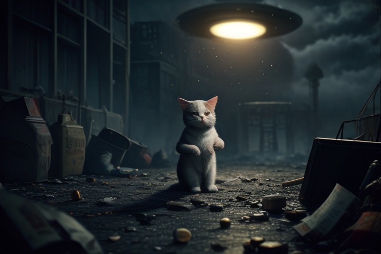 (((area 51))), ufo, apocalypse, cat, chibi, cute, sparkles, machine, mouse, war,, bullets, gun, rpg, blood, fire, waste, trash, (city background), building, beer, vodka, whiskey, scotch, blood, fight, ((((drunk)))), journal cover, text, (((big text))) nbt7fiumtf78imy7im