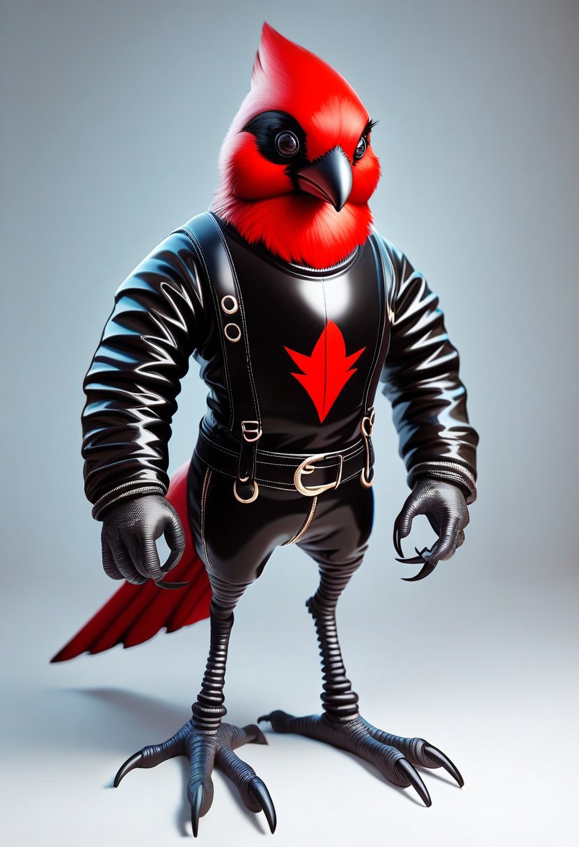 score_9, score_8_up, score_7_up, score_6_up, solo, latex inflatable cardinal Girl, cardinal head, cardinal, feathers, occult, cultist, necromancer,