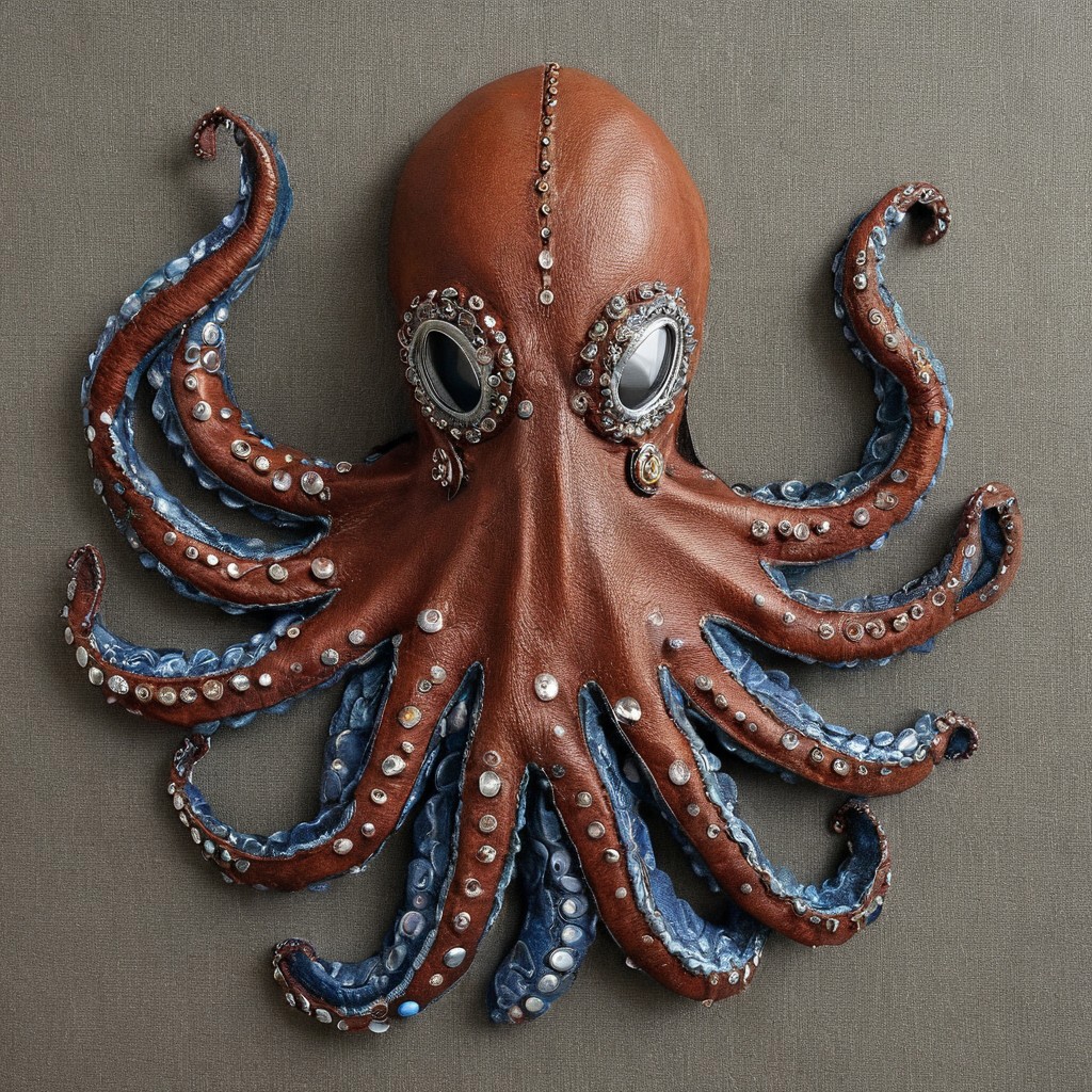 cs-l3ath3r, man with an octopus mask made of leather, close-up of the mask